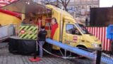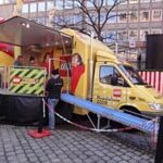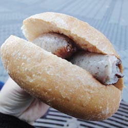 広場のほうへ一旦戻り、屋台でソーセージのパンをかじりました。