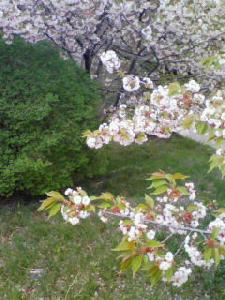 保育所の前には淡いピンク色の山桜がとっても綺麗に咲いていました。