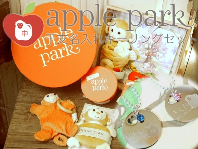 アップルパークのおさるさんベビーアイテムと、おさるの名入れキーリングが限定セットになりました♪