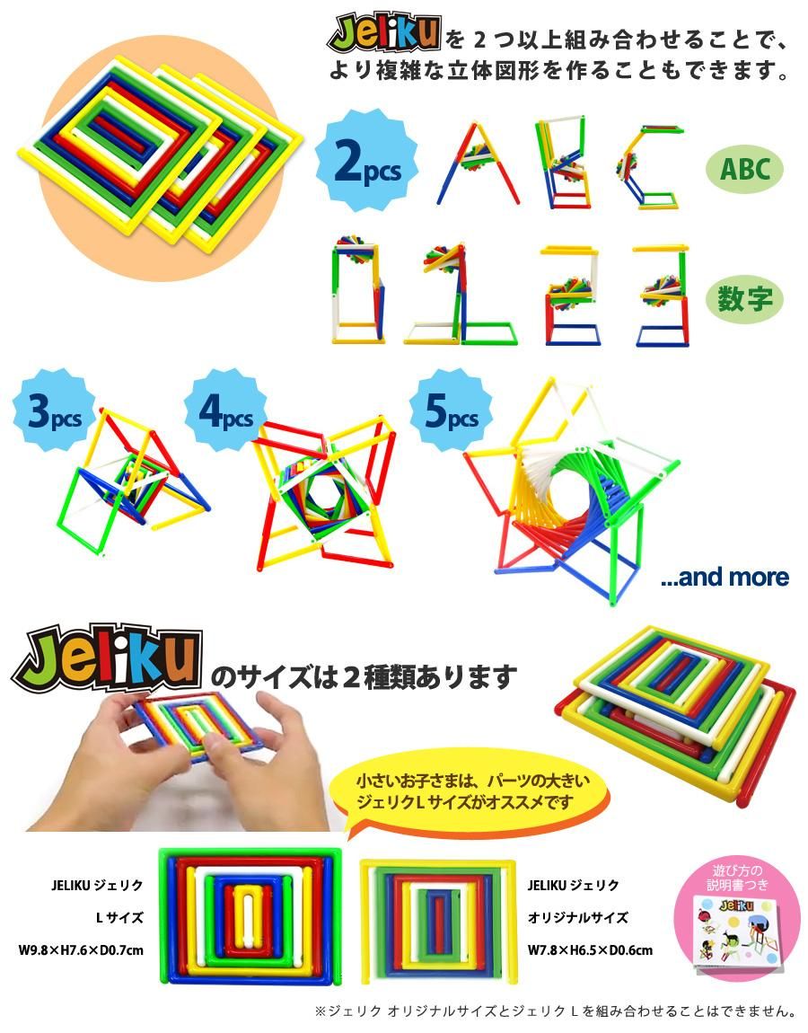 また、2つ以上のジェリクを組み合わせると、アルファベットや数字、幾何学形など更に複雑な形を作ることができます。