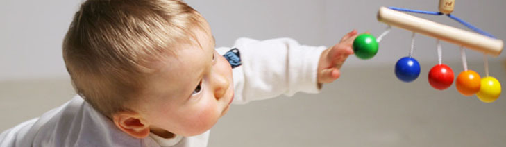 3ヶ月を過ぎていろいろと動き始めた赤ちゃんには、手の届く高さに吊るしてあげてください。
