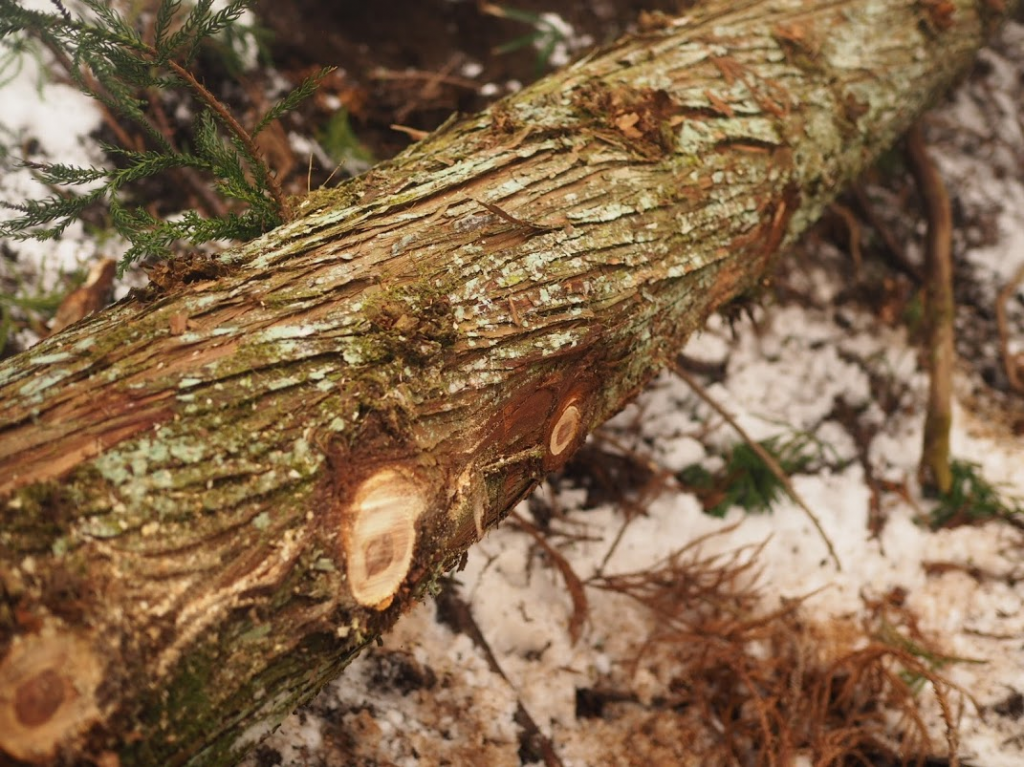 角度が少しずれ、倒れる際に隣の木の枝に引っかかってしまい、少々手こずりましたが、無事倒すことができました。