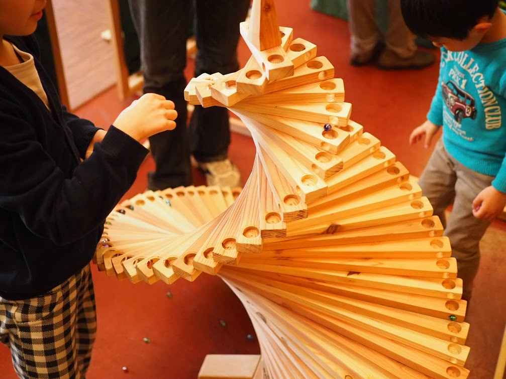 迫力のあるビー玉の動きに子供達は夢中になります。