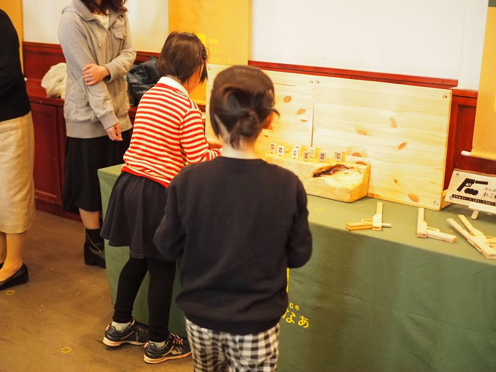 間伐材の輪ゴム鉄砲は、大人の方にも遊んでいただきました。
