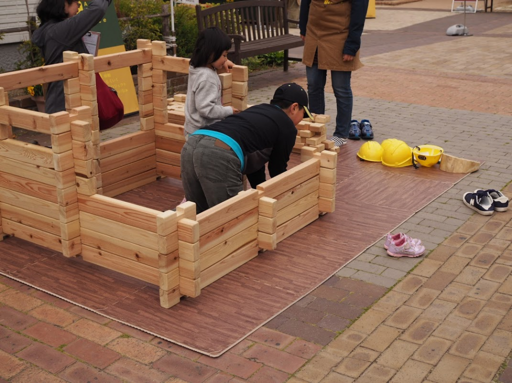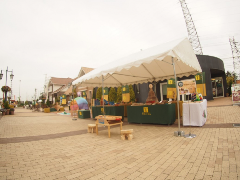 三井アウトレットパーク仙台港観覧車側入り口付近に設置した、ログハウスキットコーナー。