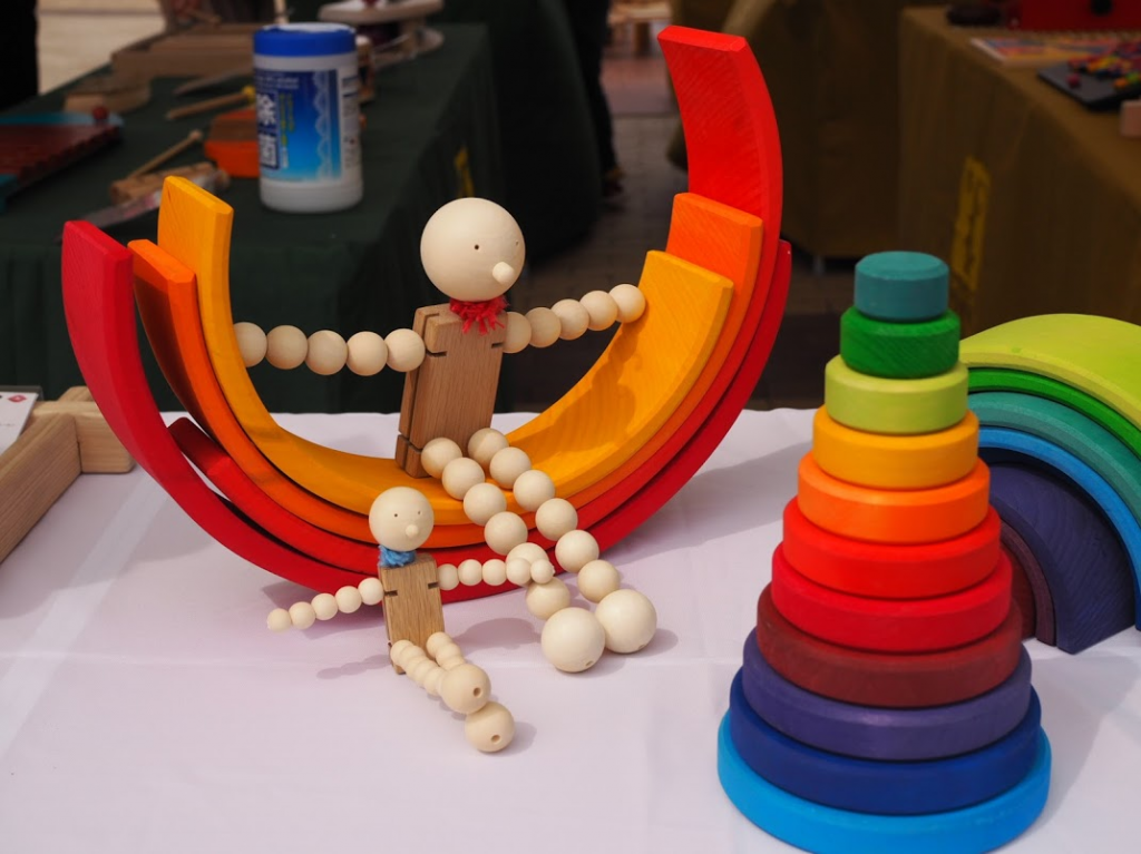 ベビーから遊べる木のおもちゃから小学生くらいまで楽しめるグッド・トイを中心に配置。
