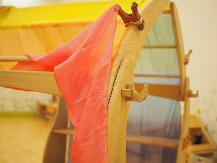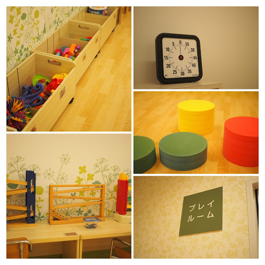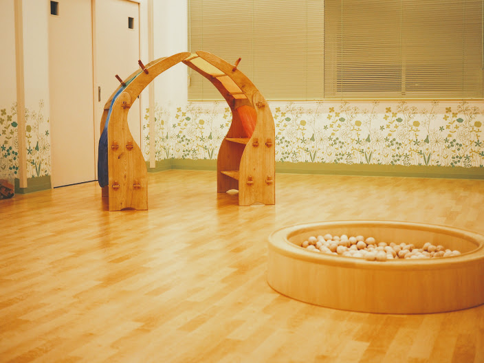 部屋の中にはプレイスタンドのほか、木玉のプールや、言語とコミュニケーションの向上の訓練に使われる楽しい玩具がありました。