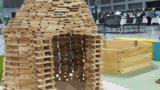 私たちユーロバスの「移動木育広場 木はいいなぁ」では、宮城県産の間伐材を利用した遊具を設置し、ダイナミックに木を感じる遊びを提供しました。