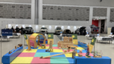 木育広場里山エスクエラの1周年イベントで、おもちゃコンサルタントと子どもたちが積み木やワークショップで遊んでいる賑やかな風景 店舗・広場情報