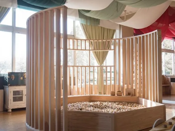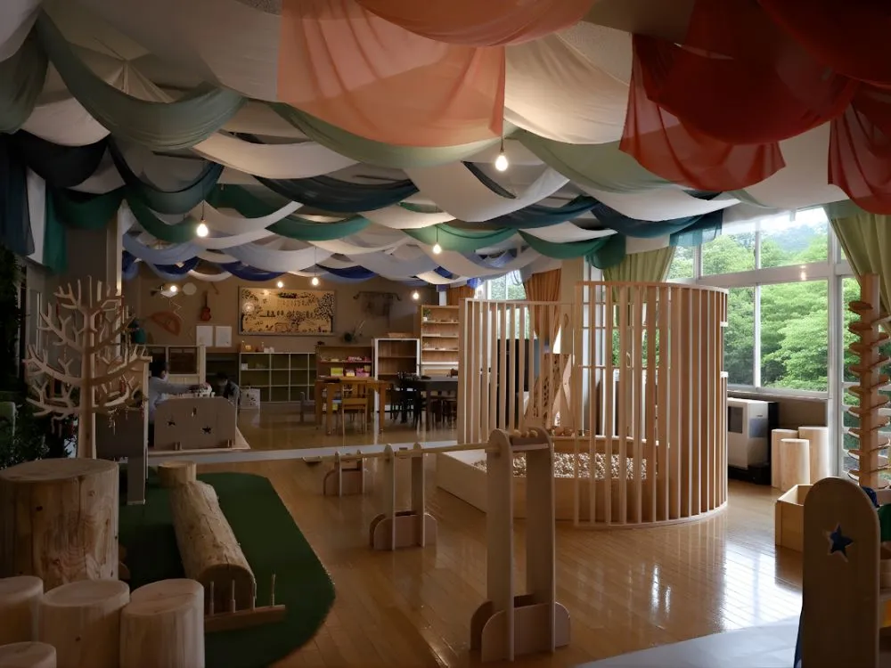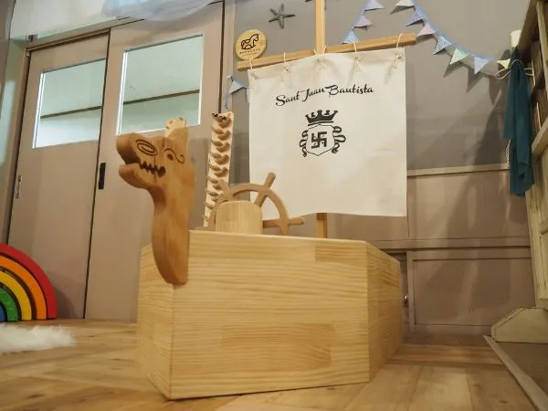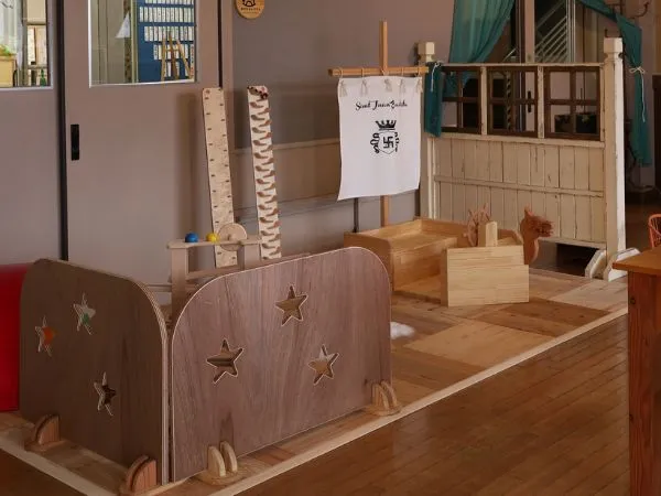 日本産天然杉のフローリングが心地よい、2歳以下のお子様専用エリアです。優雅に舞うカモメと輝く青い天井は、支倉常長がサンファン・バウティスタ号で航海した壮大な海原をイメージ。ベビーの安全を第一に設計された空間で、五感を育む豊かな時間をお過ごしいただけます。