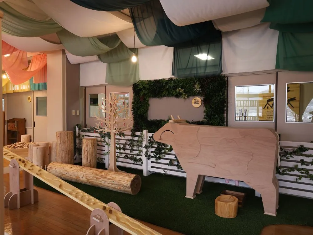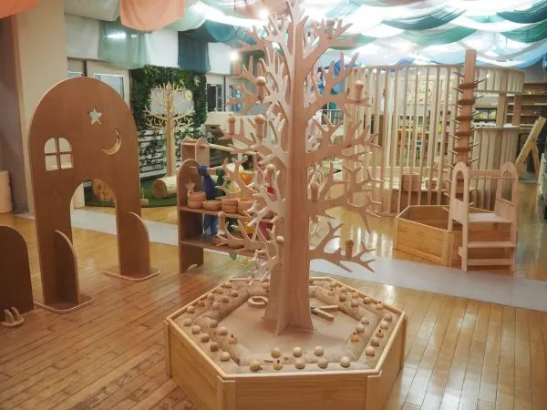創造力を育む、2歳以上のお子様が対象の建築エリア。大きなお家を組み立てられるログハウスキットをはじめ、宮城県産間伐材を使用した6,000枚の積み木、20箱もの保育積み木を配備しています。親子で協力して大きな作品を作る楽しさや、定期的に開催される迫力ある積み木イベントで、知育と遊びの要素を兼ね備えた体験をお楽しみください。
