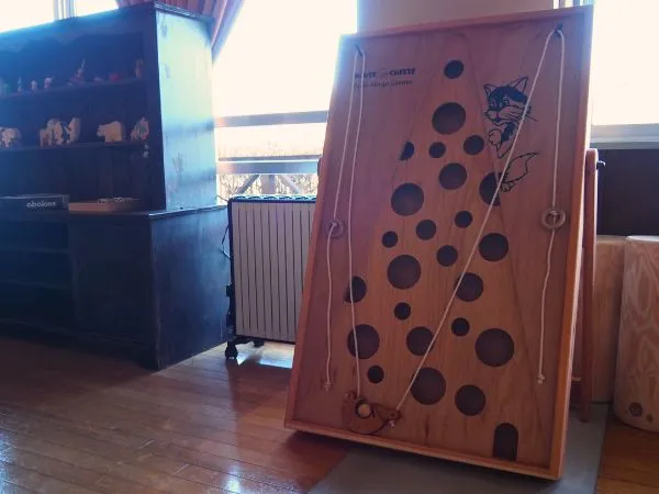 2本の紐を操って、ボールが穴に落ちないように頂上を目指しましょう。大人も楽しいちょっと難しいアクティビティです。